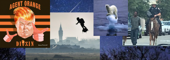 En bandeau, création de circonstance par collage et bidouillage de trucs récupérés par-ci, par-là, et où on voit des queues partout.